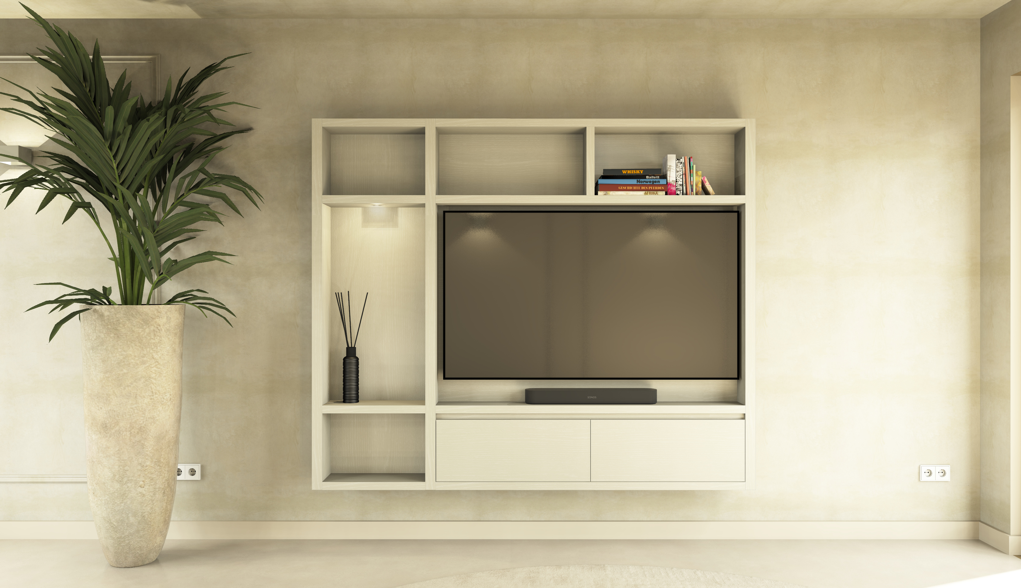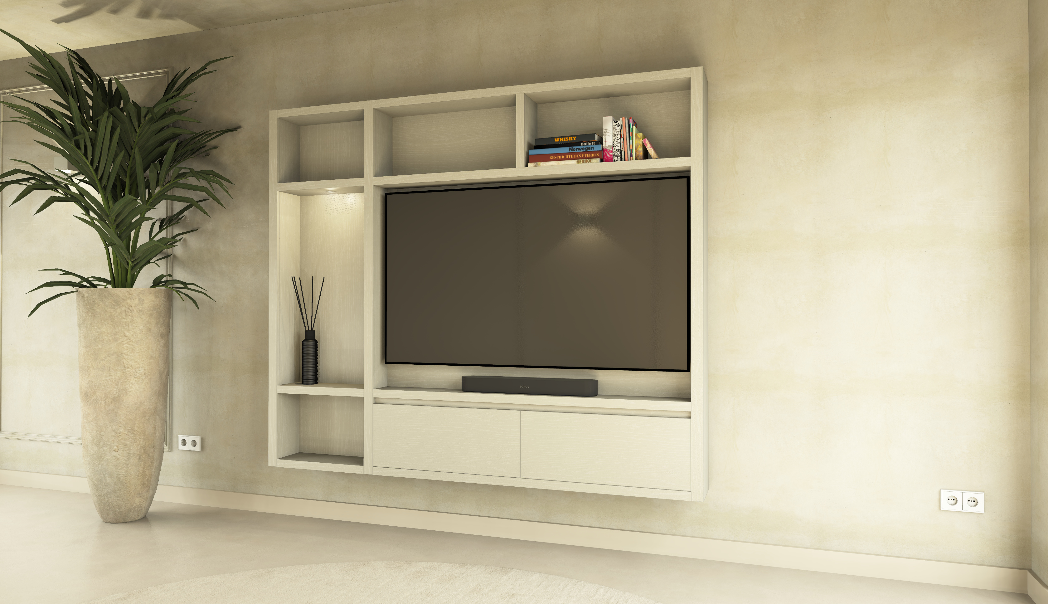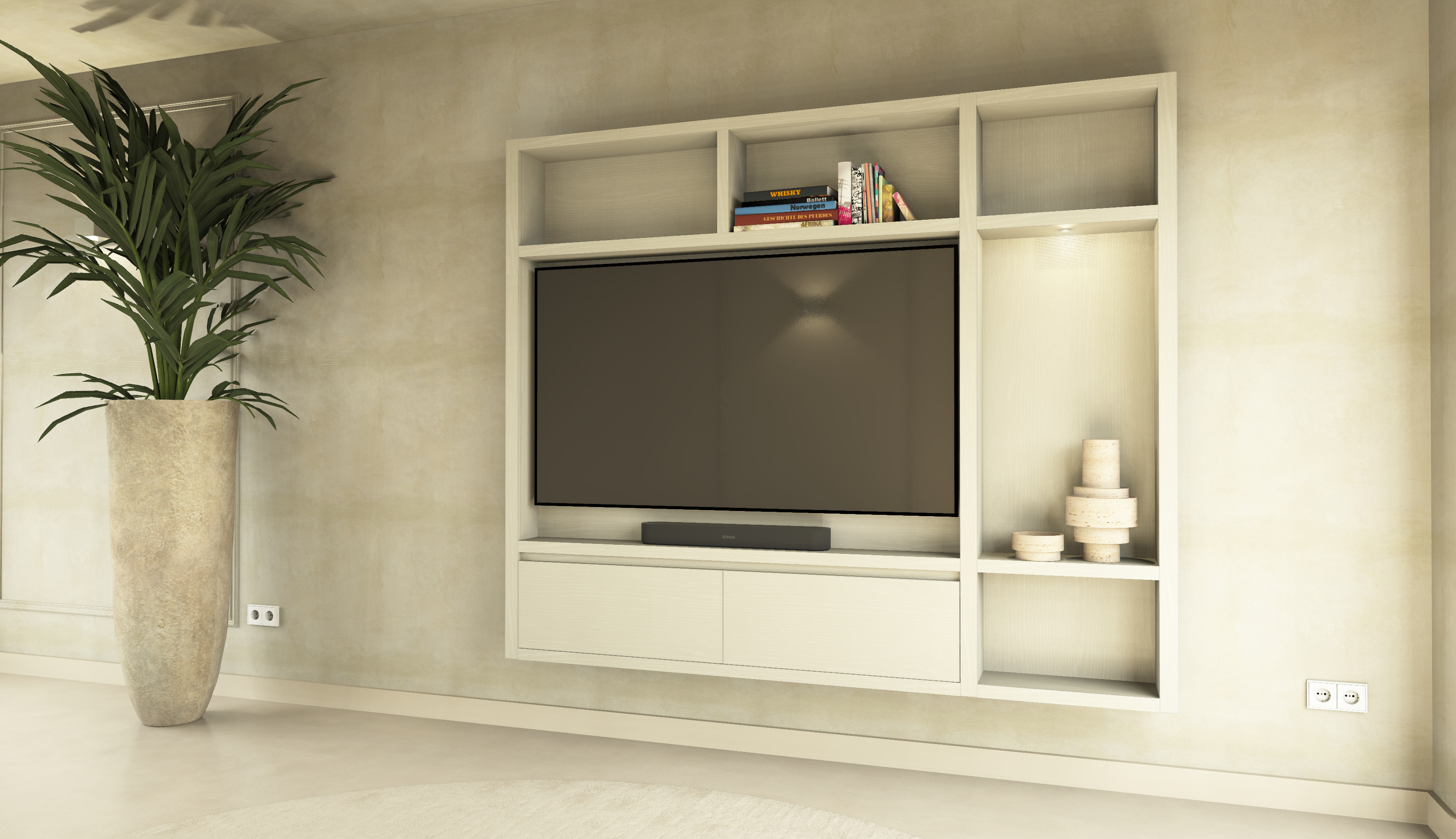 Dit op maat gemaakte cinewall systeem is verkrijgbaar in verschillende configuraties, zodat je de perfecte opstelling kunt kiezen die past bij jouw persoonlijke smaak en ruimtevereisten. James biedt een scala aan mogelijkheden om uw interieur aan te passen aan uw persoonlijke voorkeuren. Of u nu kiest voor een ingetogen look of een opvallende stijl met LED-verlichting in de bovenste plank van het middelste vak, James past zich aan uw wensen aan.